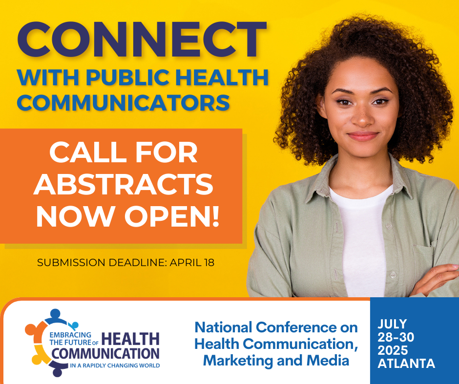 Public health communicators are invited to submit thematic panel proposals and poster abstracts for the 2025 National Conference on Health Communication, Marketing, and Media (NCHCMM), which will take place from July 28-30, 2025, at the Hyatt Regency Atlanta. The conference welcomes research and insights on health communication strategies, social marketing, media initiatives, policy communication, and emerging trends.