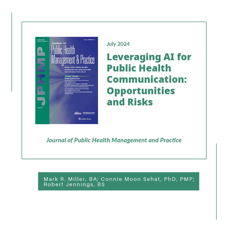 NPHIC's Executive Director, Robert Jennings, has co-authored a new article in the Journal of Public Health Management & Practice. AI presents unprecedented opportunities for public health executives to enhance communication effectiveness, engage diverse audiences, and address complex health problems.