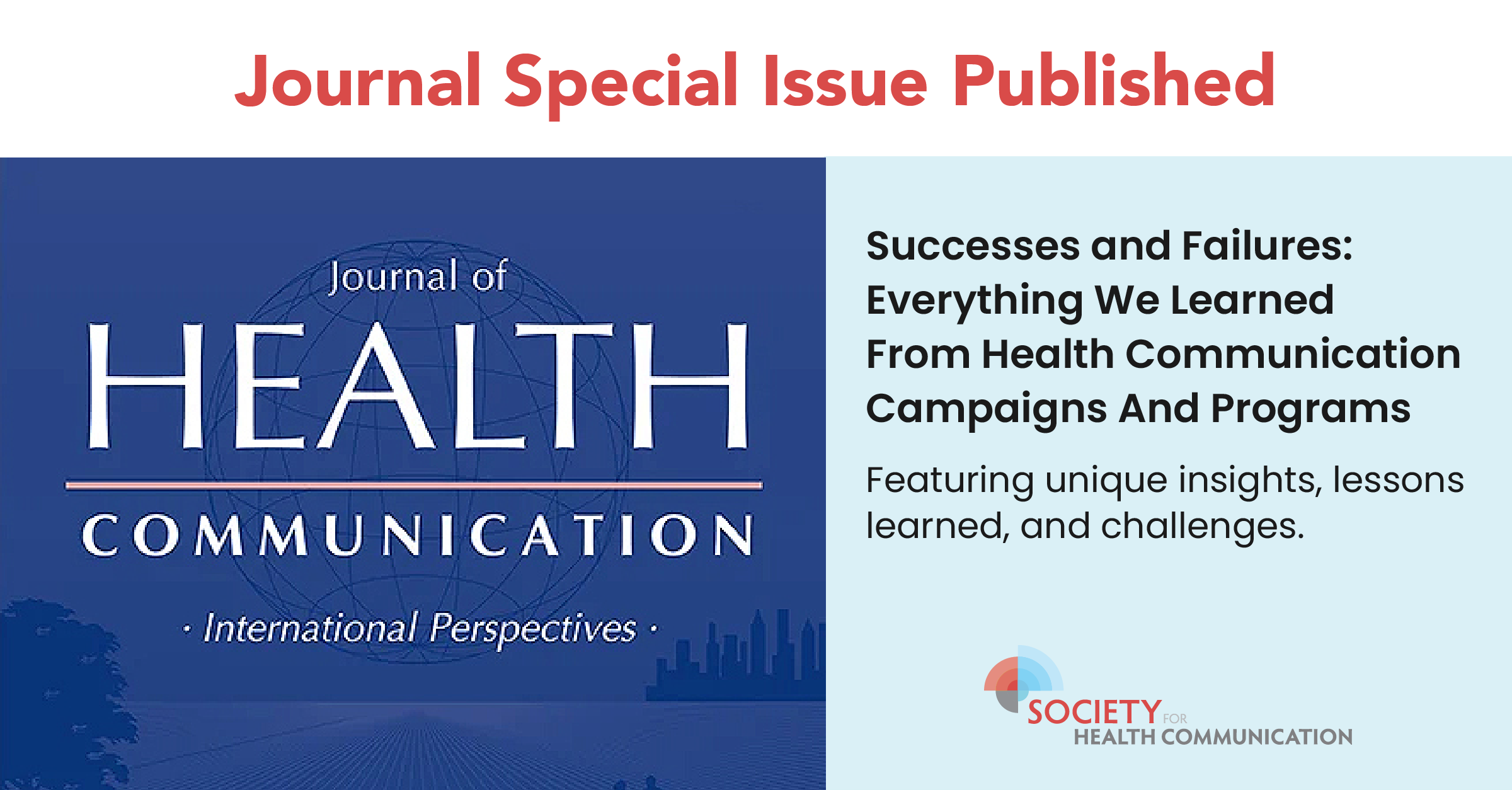 The Society for Health Communication and Journal of Health Communication Special Issue "Successes and Failures: Everything We Learned from Health Communication Campaigns and Programs" has been published and includes 9 peer-reviewed research papers from health communication programs in the U.S. and around the world.