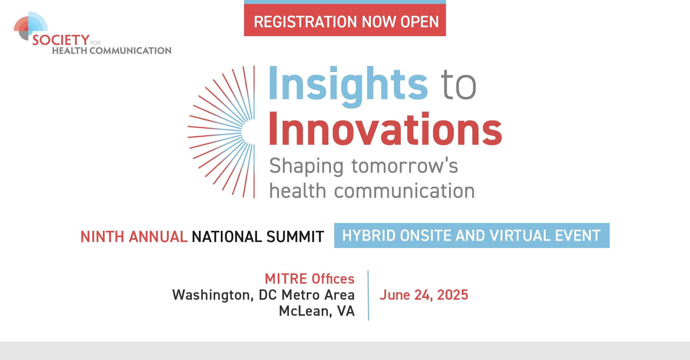 The 9th Annual National Summit for Health Communication, hosted by the Society for Health Communication, will take place on June 24, 2025, in McLean, VA and online. The summit offers a rich opportunity for public health communicators to gain practical tools and fresh insights. This one-day event will spotlight expert-led sessions on critical topics like generative AI, evaluation strategies, and future trends in health communication.